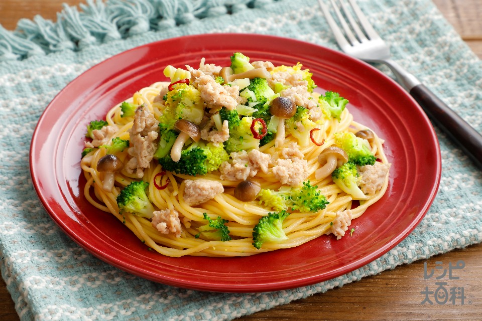 ひき肉とブロッコリーのワンパンペペロンチーノの献立 副菜:ズッキーニ のハム巻き、汁物:チーズフォンデュ風コーンクリーム 献立・メニュー 味の素パーク たべる楽しさを、もっと。