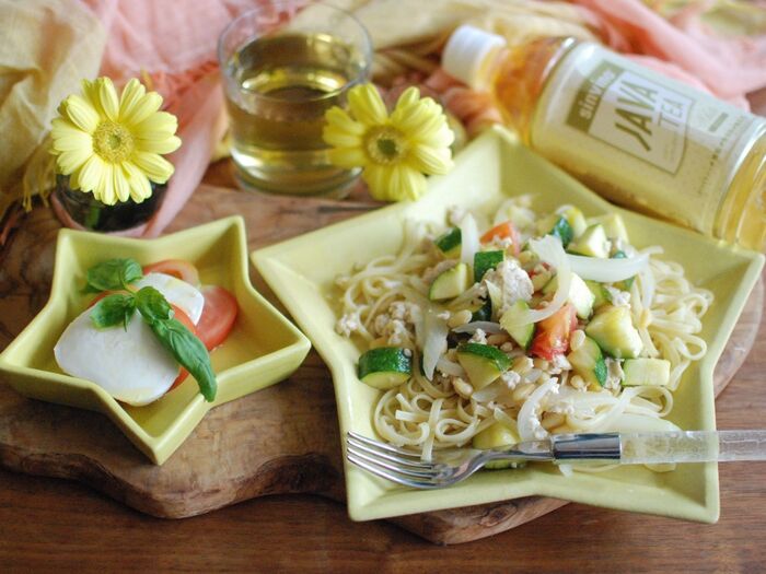 ☆ズッキーニと鶏ひき肉のパスタ×JAVATEAでおうちランチ☆。