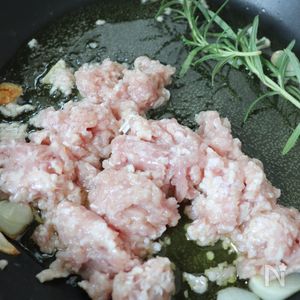 ひき肉とズッキーニのパスタ ローズマリー風味♪クラシル。