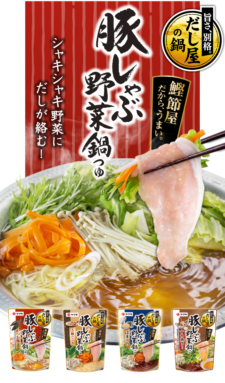 豚しゃぶ野菜鍋つゆ 3種のごま鰹節屋・だし屋、ヤマキ。