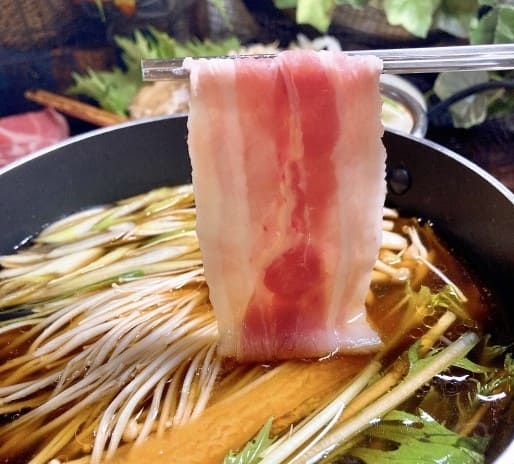 簡単つゆでも極上の味に!豚バラしゃぶしゃぶとネギの醤油鍋 プロの料理人の鍋レシピ。