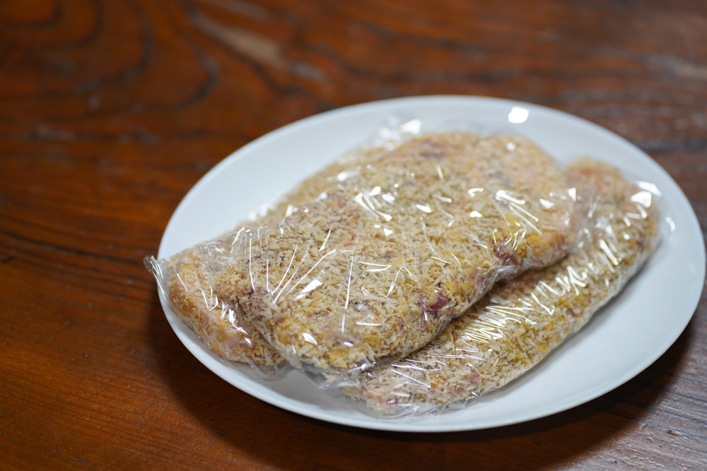 下味冷凍 豚ロース肉の塩糀漬け やわらか揚げ焼きとんかつ。