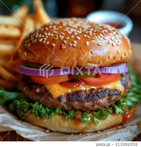 アメリカの人気フード:ハンバーガーのイラスト素材111092058- PIXTA。