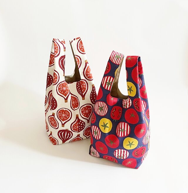 食べ物シリーズ イチジク柄 マルシェバッグ 手提げトート エコバッグiichi日々の暮らしを心地よくするハンドメイドやアンティークのマーケットプレイス。