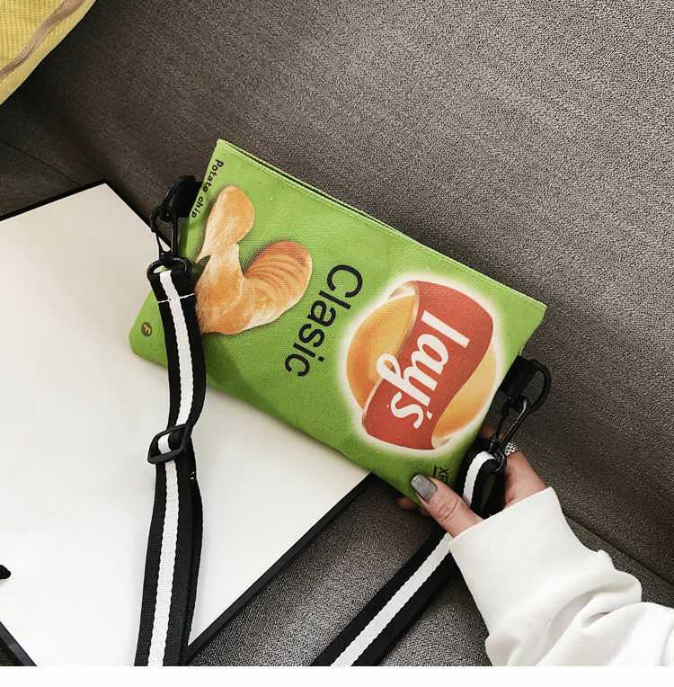 個性的 目立つ ミニバッグ ショルダーバッグ 肩掛け カバン 韓国ファッション ユーモア おもしろ ギャグ 食べ物 ポテチ 105sweetly。
