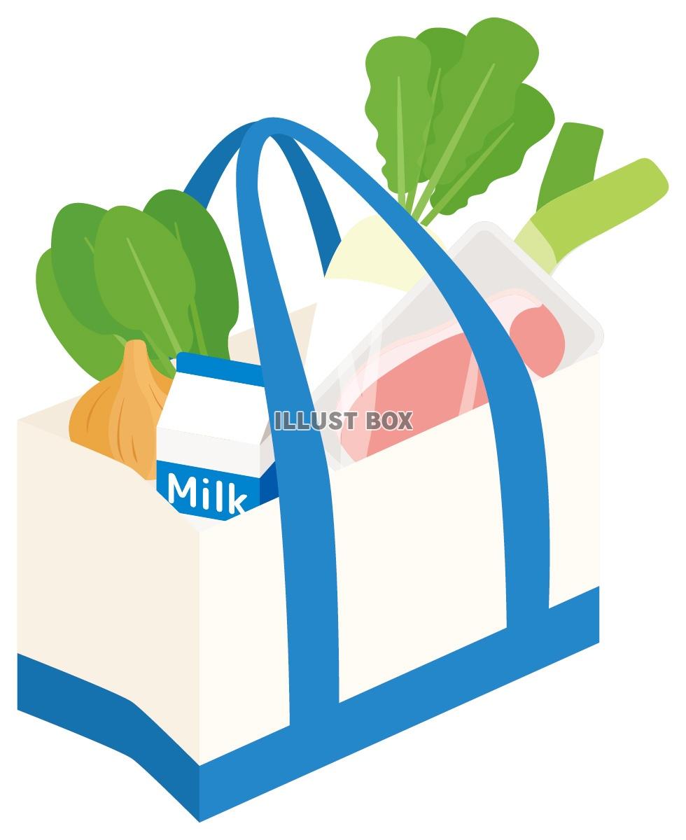 マイバッグに入った食材 レジ袋、スーパーマーケット、トートバッグ、エコバック買い:イラスト無料。