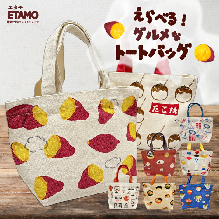 食べ物 ミニトートバッグ たいやき ラーメン たこ焼き 焼き芋 丼めし 日本酒 喫茶 飲茶 — Etamo。