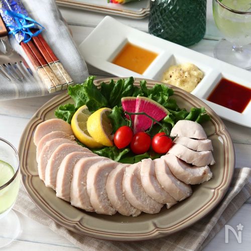 低温調理で しっとりおいしい鶏むねハム 絶品3種のたれ。