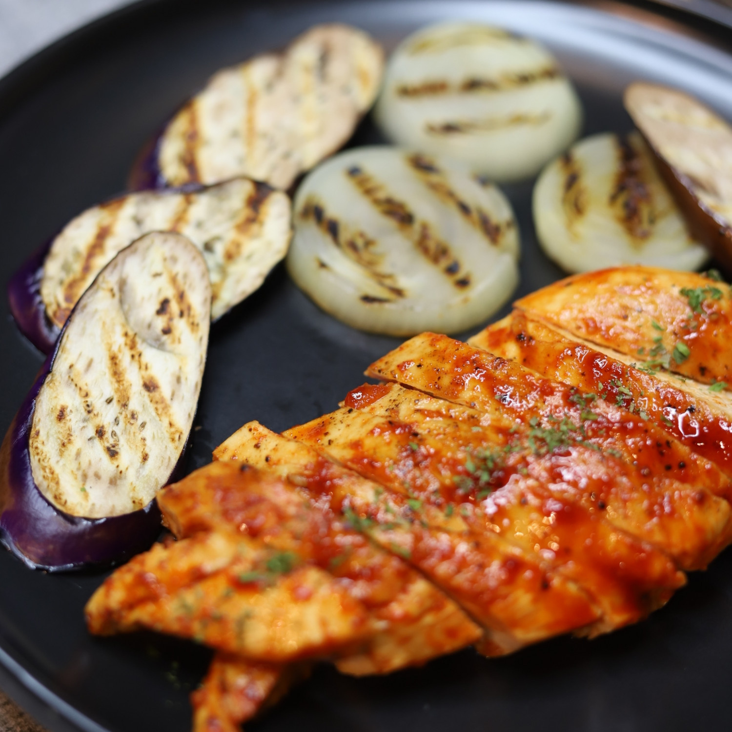 まろやかな辛味と旨味で大満足!「鶏むね肉のコチュジャン漬け焼き」。