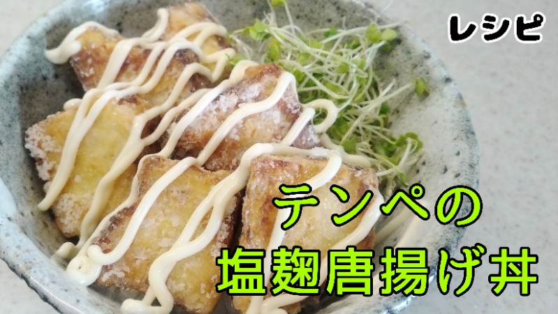業スー テンペの塩麹唐揚げ丼のレシピメダカは語らない メダカブログ。
