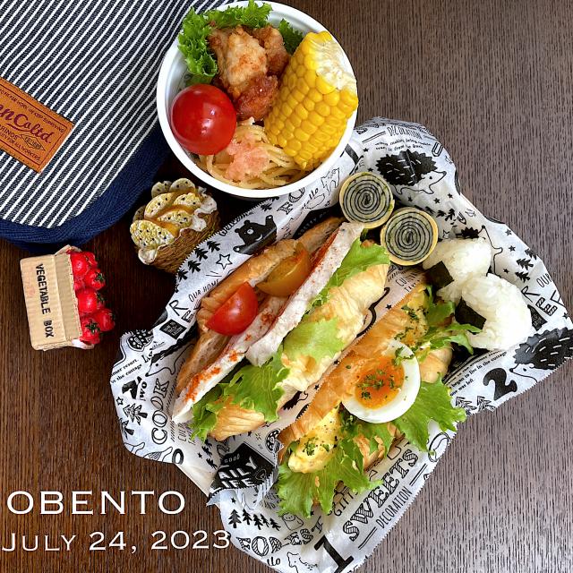 クロワッサンサンドとビアソーセージのおこさま弁当 – お弁当の詰め方と盛り付けのコツ – ピクニックにもおすすめOH!BENTO – おこさま弁当 の記録とレシピのメモ。
