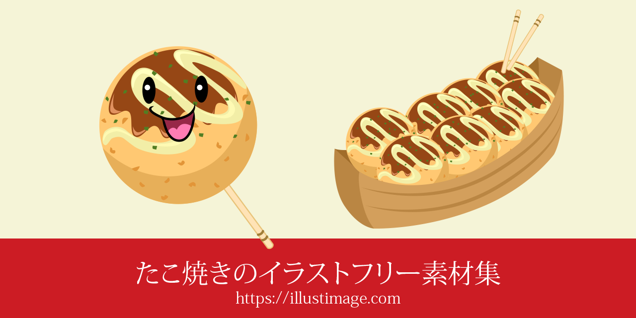 まとめ たこ焼きのイラストフリー素材集イラストイメージ。