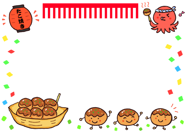 お祭り屋台の定番・たこ焼きのイラストイラスト無料・かわいいテンプレート。
