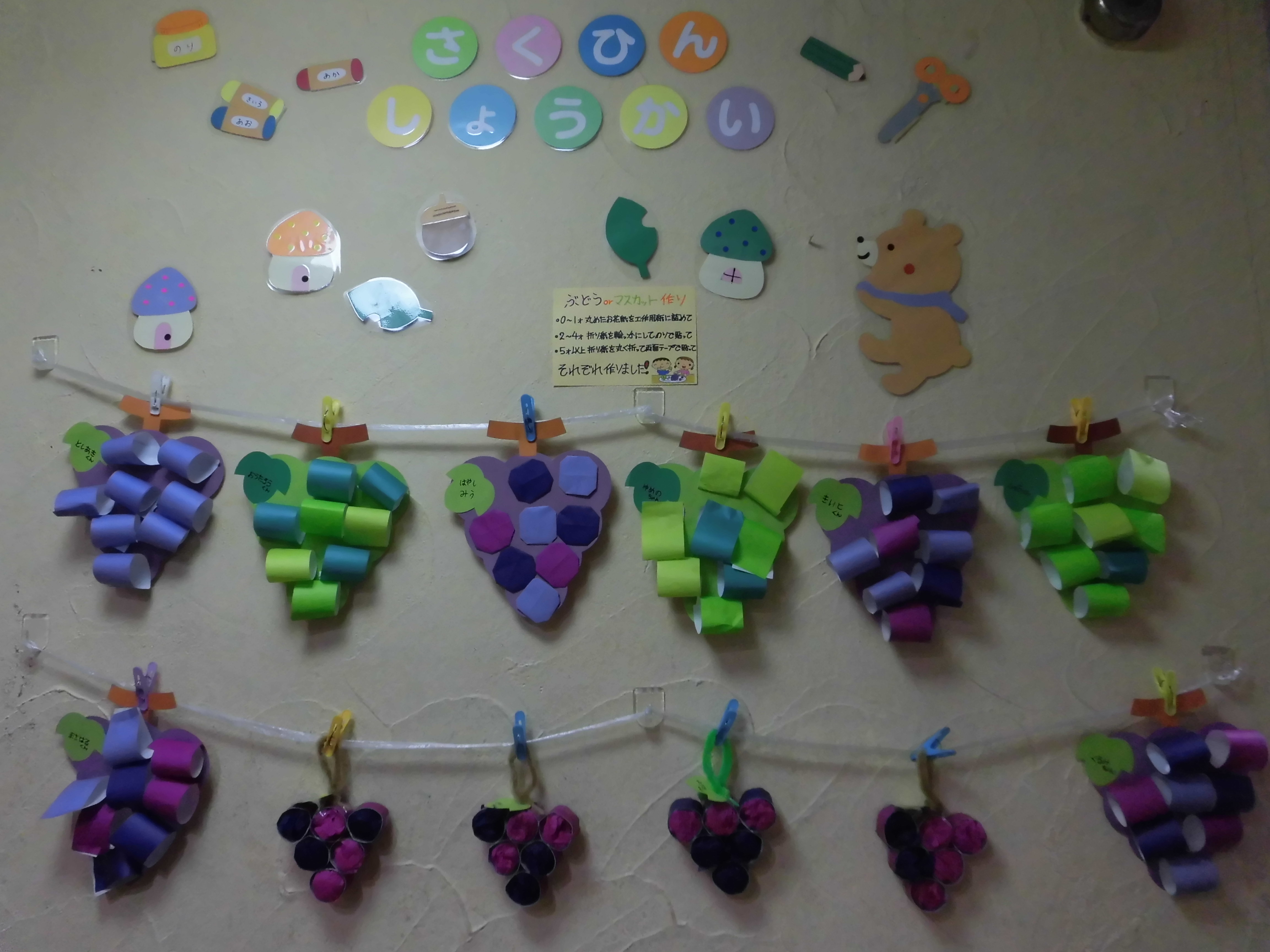 ぶどうの壁面製作のアイデア7選 1歳児、2歳児、3歳児、4歳児男性保育士あつみ先生の保育日誌 おすすめ絵本と制作アイデア。