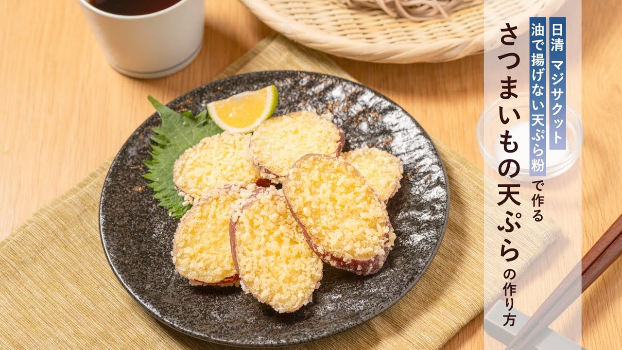 「日清 マジサクット 油で揚げない天ぷら粉」で作るさつまいもの天ぷらの作り方。