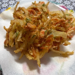 天ぷら粉を使って簡単に! しらすと人参のかき揚げ。