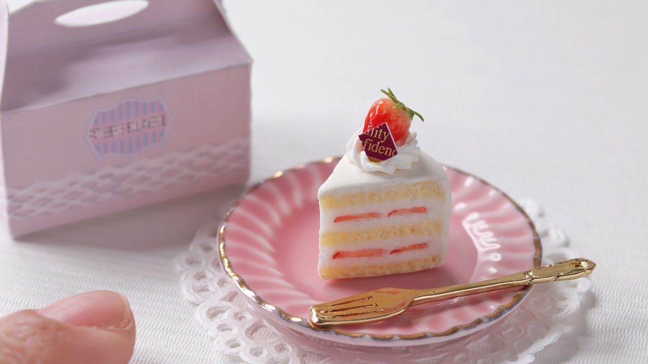 樹脂粘土でミニチュアスイーツ作ってみた 苺ショートケーキバージョン🍰I tried making a miniature cake out ofclay。