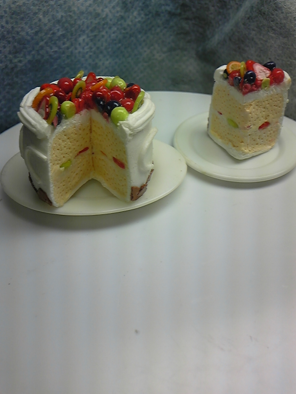 フルーツケーキ~ホールケーキカット編 完成樹脂粘土 フェイクスイーツ ミートママ 軽量粘土。