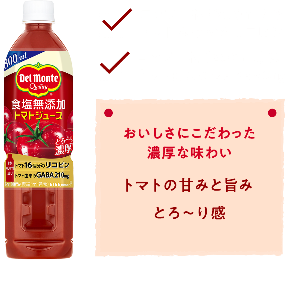 トマトジュース・野菜ジュースデルモンテ飲料ブランドサイトキッコーマン。