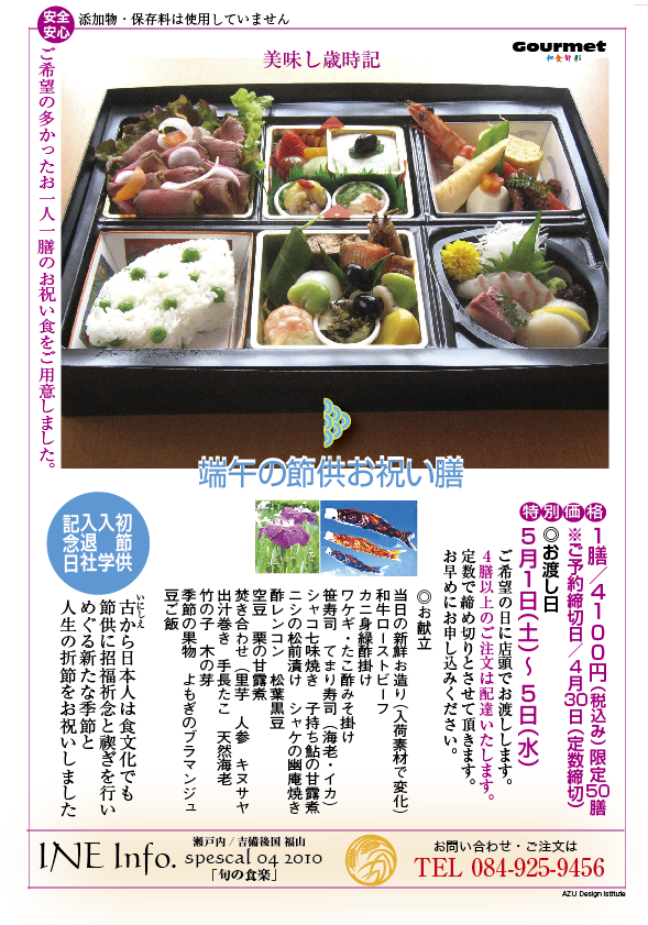 端午の節句お祝い膳料理 魚鉄法事、ひつまぶし、名古屋めし、ふぐ、あんこう鍋。