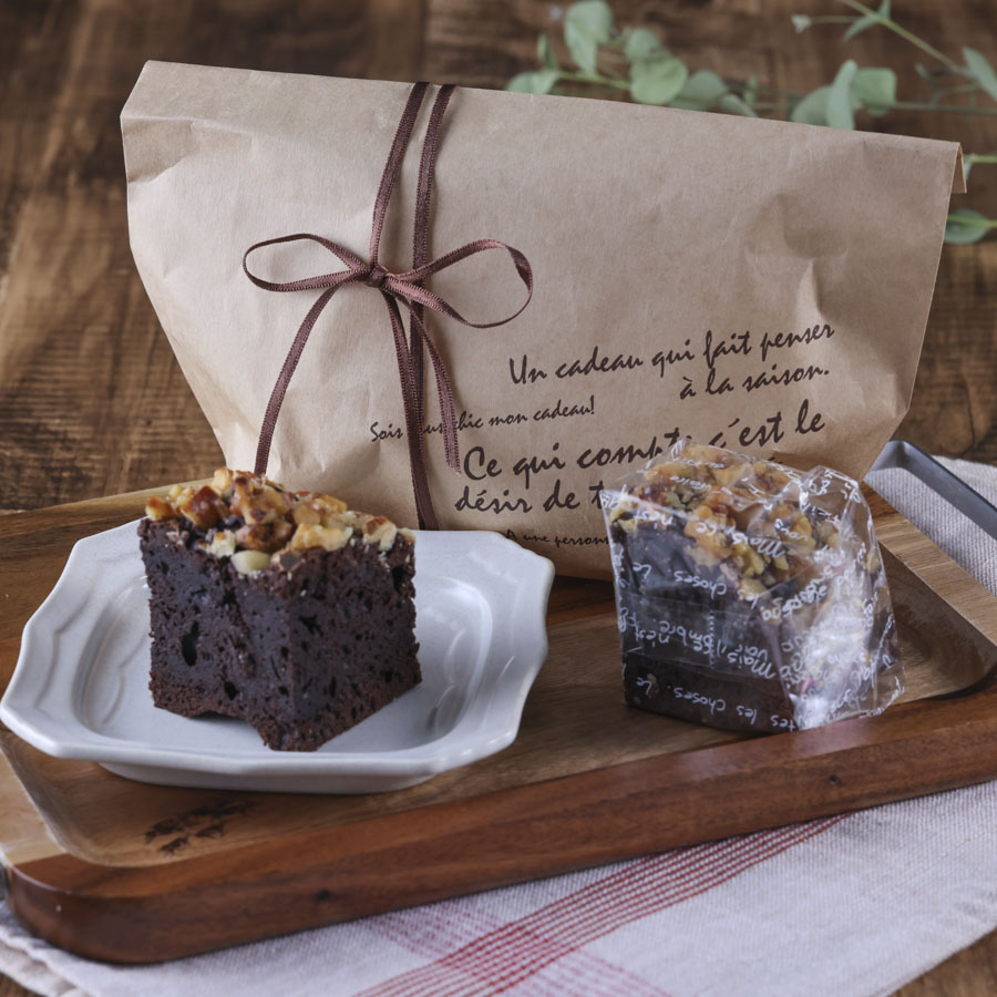 厚焼きブラウニーのシンプルラッピングラッピング富澤商店。