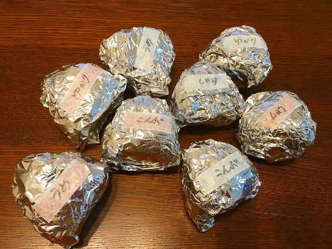 おにぎりはアルミホイルで包み雑菌の繁殖をふせぐ。ラップと使い分け中ゆうゆうブログ。
