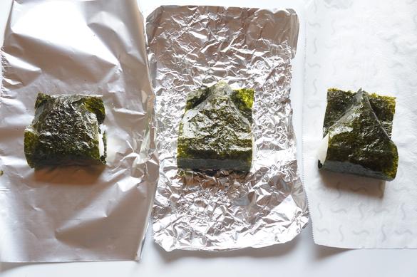 100均検証 セリアで買った「おむすびホイルシート」と「クレラップ」と「アルミホイル」で包んだおにぎりを比べてみた結果ロケットニュース24。