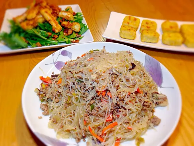 食感違いが楽しいね♪はんぺんと油揚げの水菜サラダ。