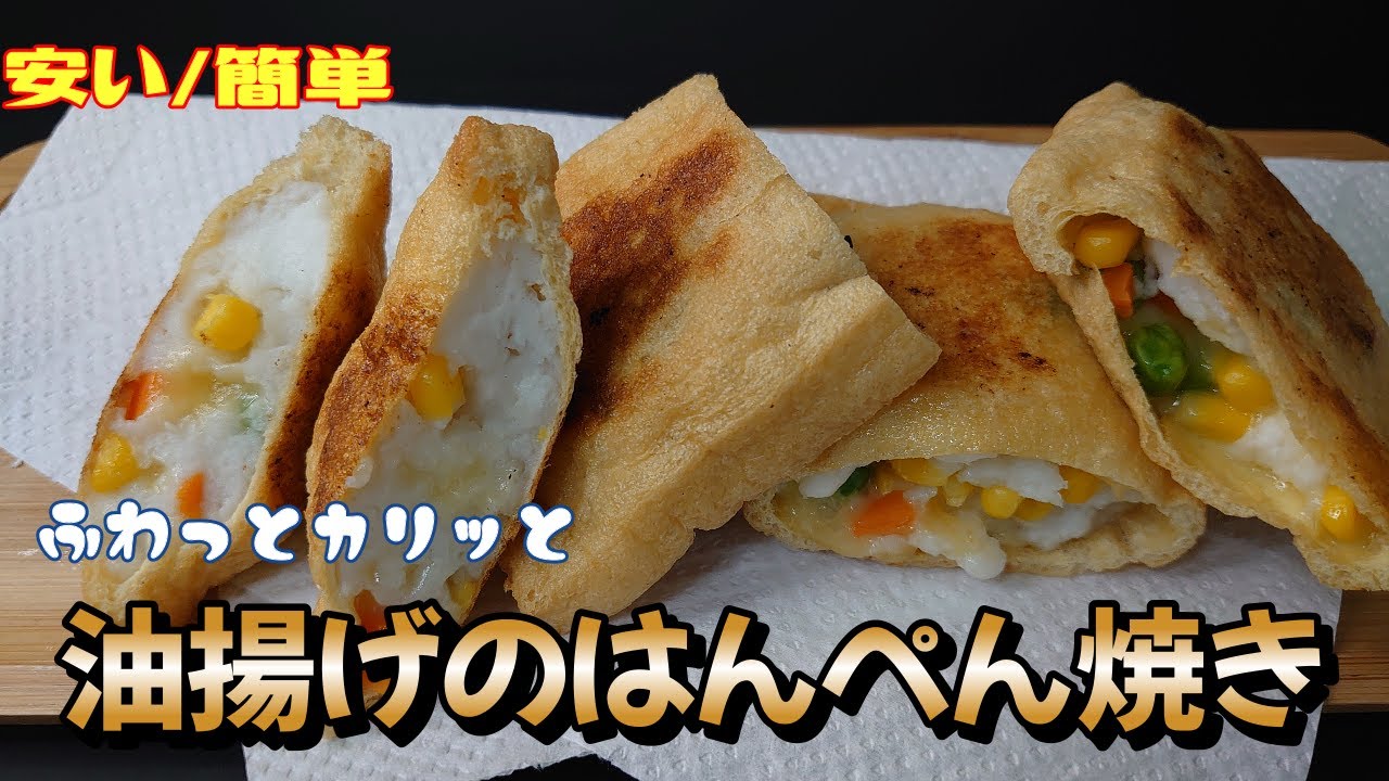 家計応援レシピ サクサク、ふわふわ、とろとろ食感!!一口食べれば絶対ハマる!ポリ袋一つで洗い物なし!! <油揚げのはんぺんはさみ焼> - YouTube。