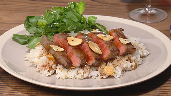 「上沼恵美子のおしゃべりクッキング」ガーリックステーキライス。