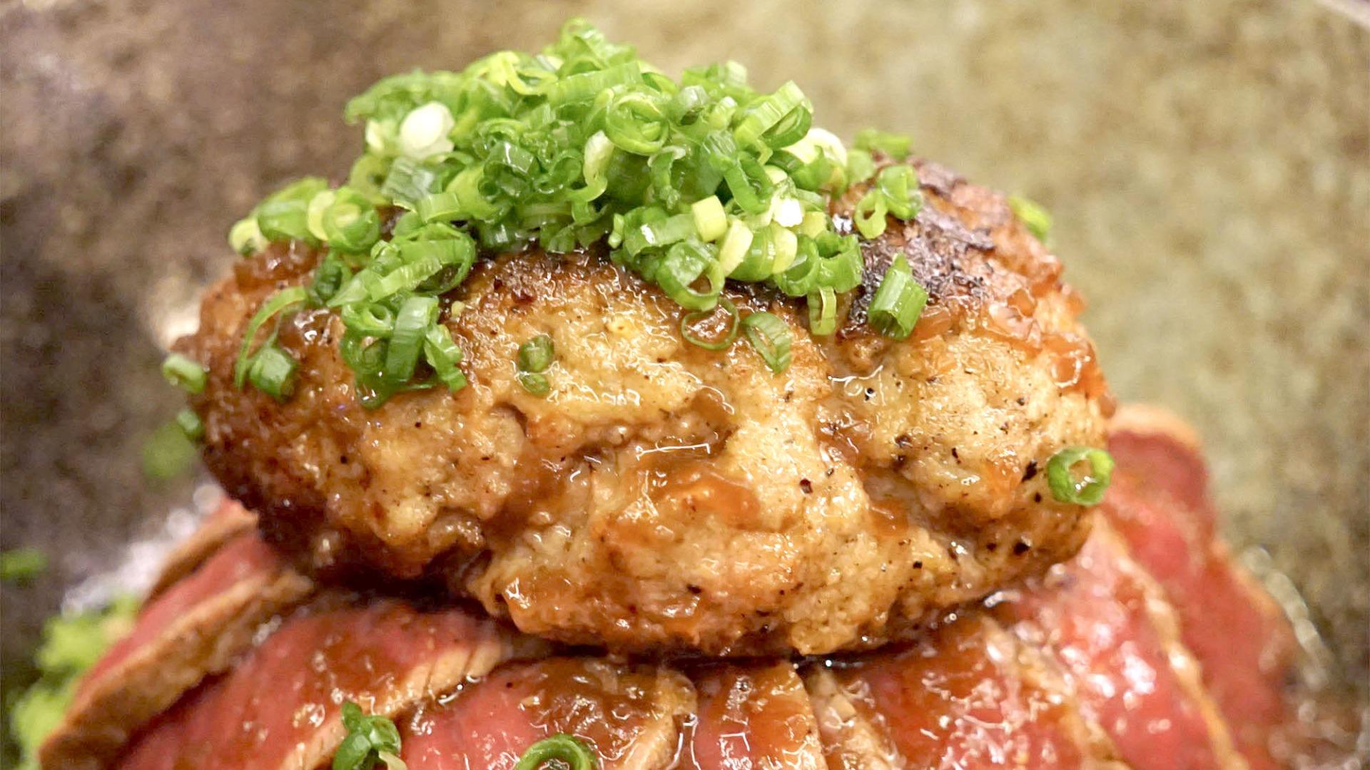 これぞ夢のドリーム丼 ハンバーグ・レアステーキ・ガーリックライスが一堂に会するインパクトどーん! ハンバーグ王子- エキスパート -Yahoo!ニュース。