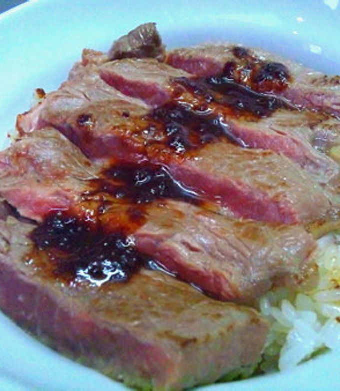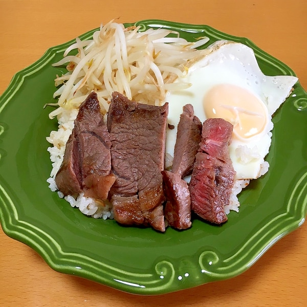 ガーリックライスのステーキ丼 レシピ・作り方 by miashimatora - 楽天レシピ。