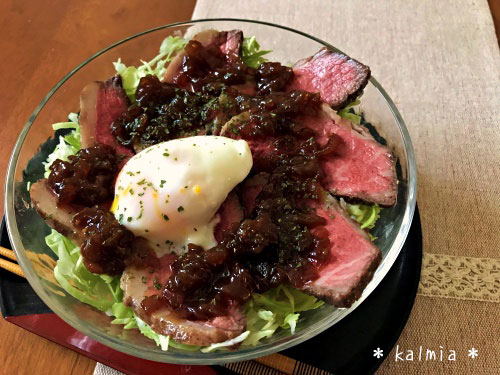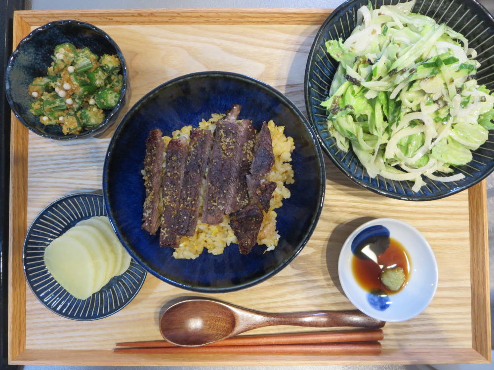 ガーリックライスのステーキ丼の献立 2019年9月28日の昼ごはん みきママのレシピ本我が家の献立の記録、糖尿病で食事制限、リウマチの記録。