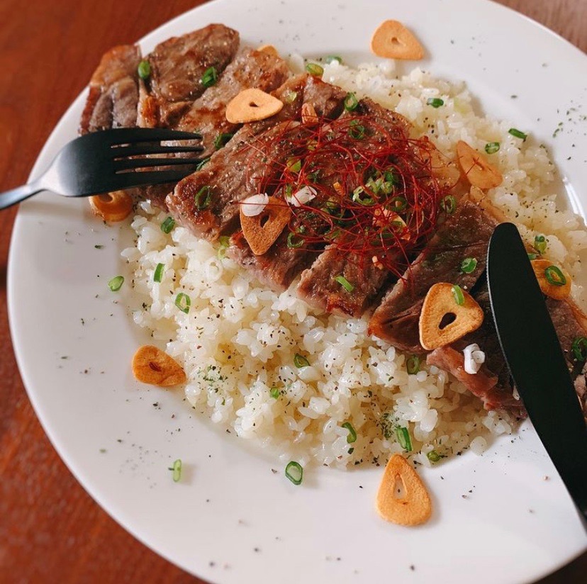 ガーリックライスミスジステーキ丼2020 11 09 LaniSnapdish スナップディッシュID:K4Dzra。