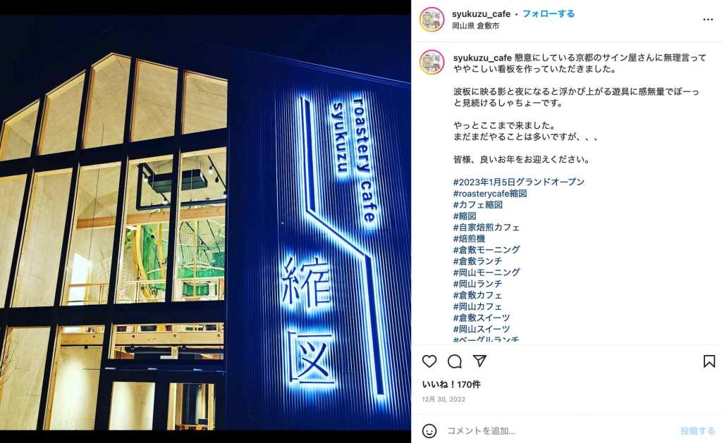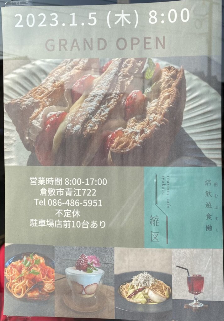 1月5日、倉敷市青江にカフェ「roastery cafe 縮図」がオープンしました! 倉敷開店 倉敷ナウ。
