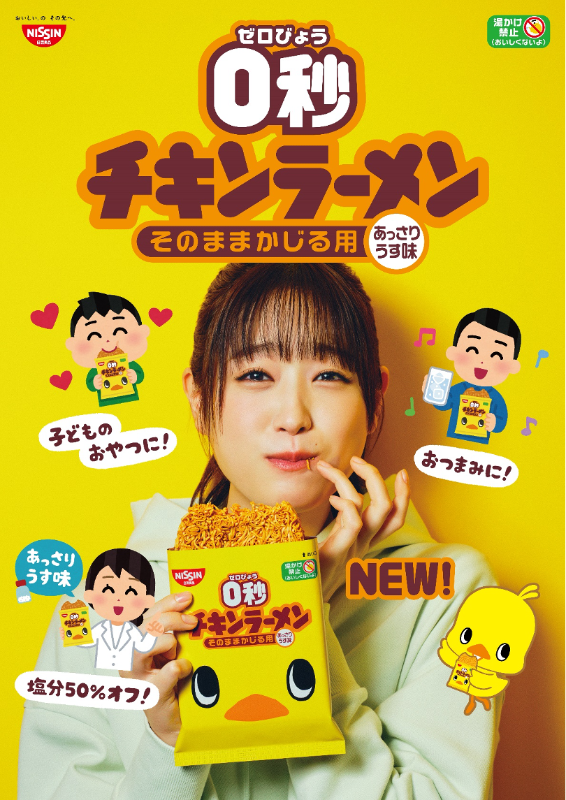 そのままかじる「0秒チキンラーメン」発売、塩分50%“あっさりうす味”で食べやすく 日清食品食品産業新聞社ニュースWEB。