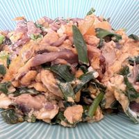 ご飯が進む簡単おかず🤭🌈 🍴menu①豚ニラたま ②崩し豆腐のおかか醤油マヨサラダ③ほうれん草とにんじんのお味噌汁 おはようございます⸜🌷︎⸝ 昨日はインスタLIVE。