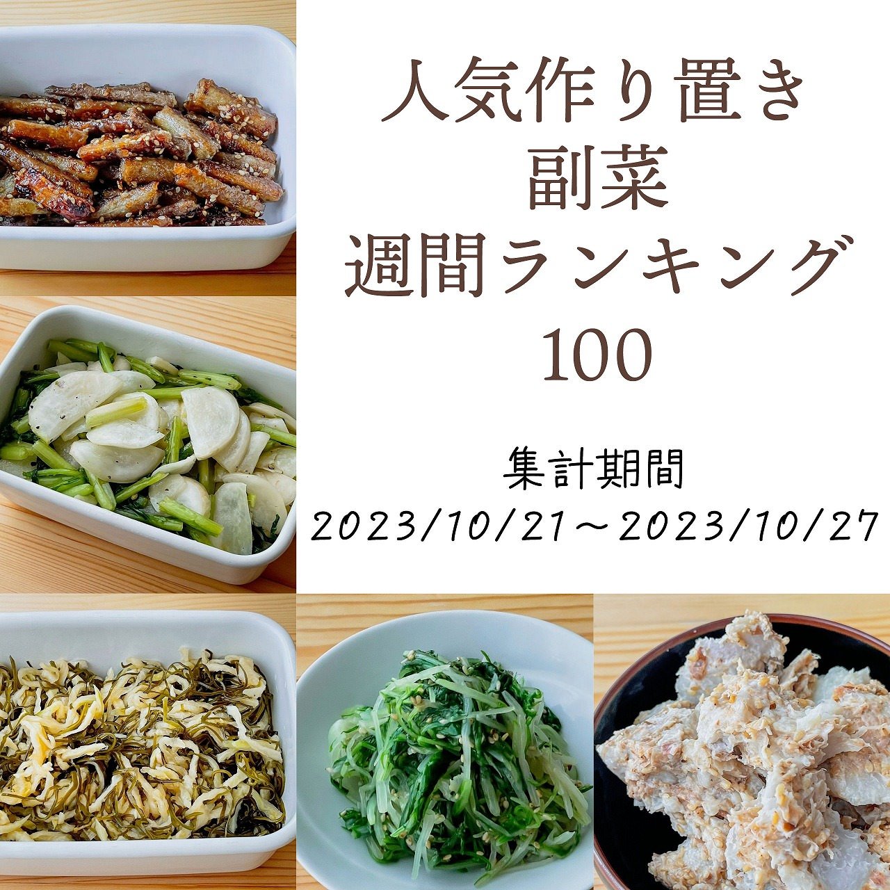 人気作り置き副菜 週間ランキング100 集計期間:2023 10 21~2023 10 27- 週末の作り置きレシピ。