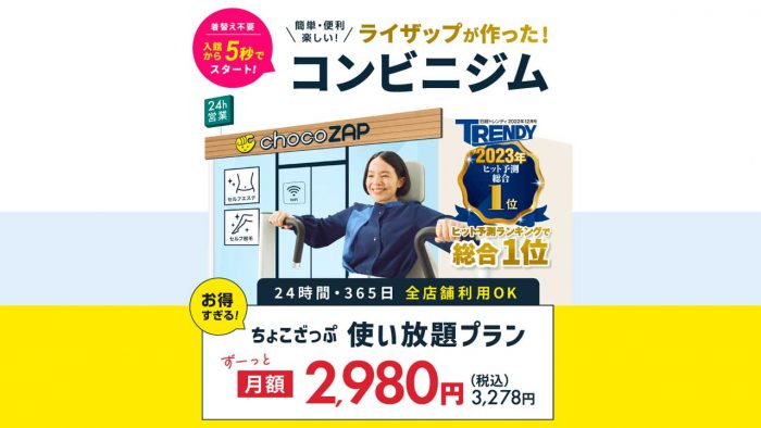 chocoZAP チョコザップ 初回限定無料1日体験ライザップが作った月額2980円 税込み3278円 の初心者向けコンビニジム。