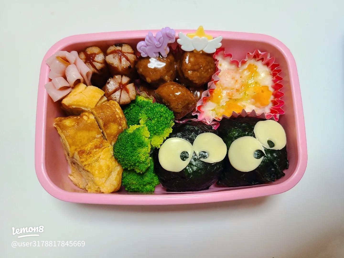 トトロ弁当まっくろくろすけ弁当白トトロ弁当 生姜焼き🐖🧅 マカロニサラダ 他でこ弁当記録キャラふる 女の子お弁当 ピックなし弁当女の子弁当 幼稚園弁当 おにぎり弁当 5歳弁当 年長弁当姉妹 姉妹ママおべんとう おべんとう記録。