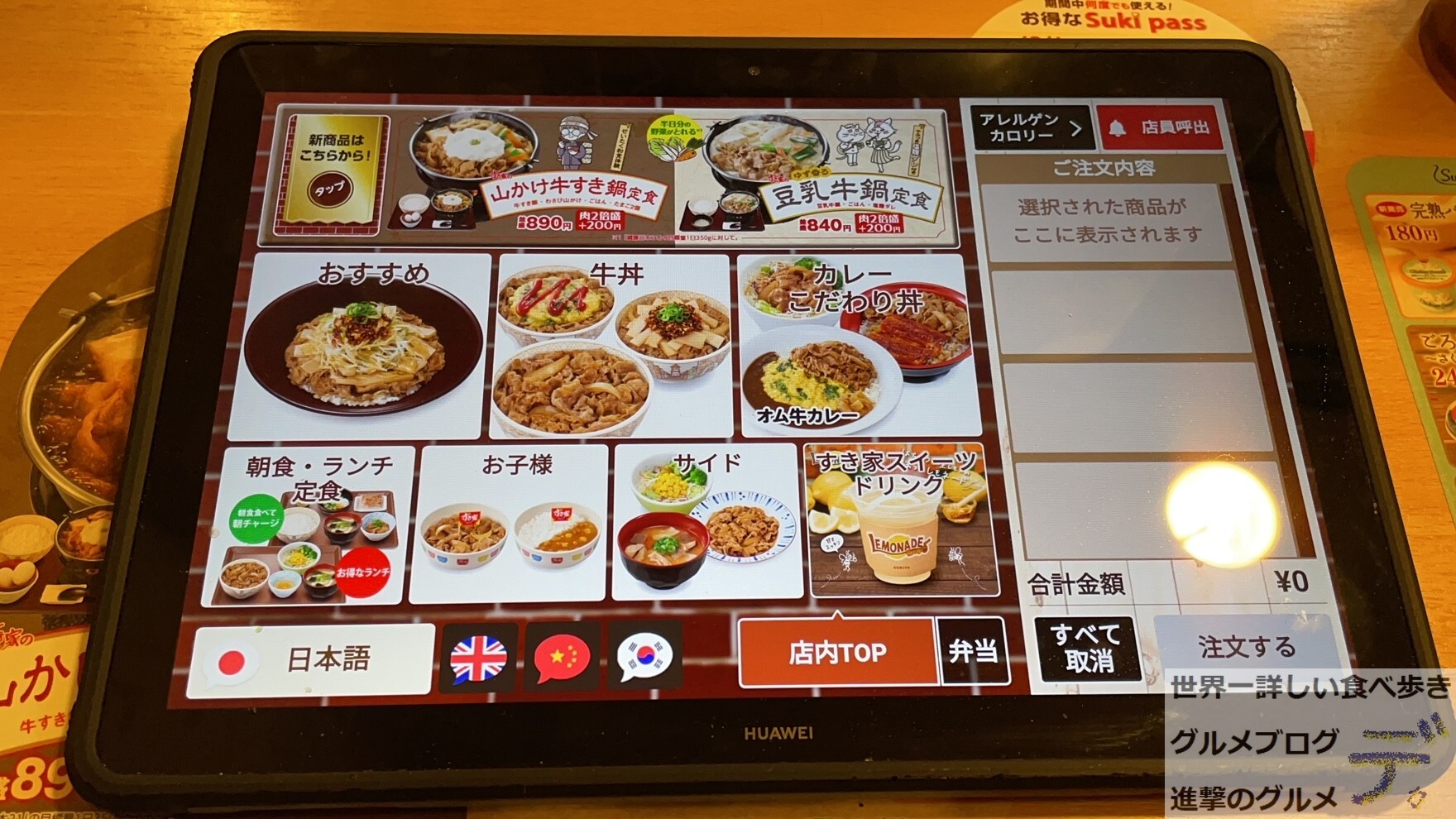 すき家 タッチパネル・セミセルフレジの持ち帰り注文利用手順日常的マネー偏差値向上ブログ。