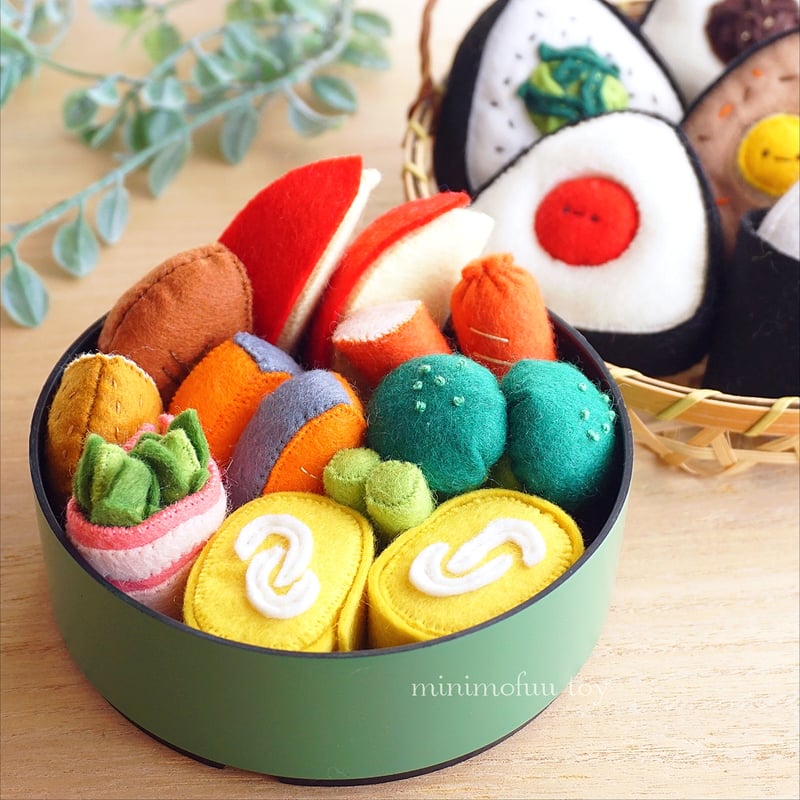 フェルトのお弁当のおかずができました🍱ハンドメイドフェルトフェルトままごとおままごとフェルト雑貨handmadefeltfeltfoodfeltroloveお昼ごはんお弁当弁当フェルトお弁当和風弁当洋風弁当bentominimofuutoy。
