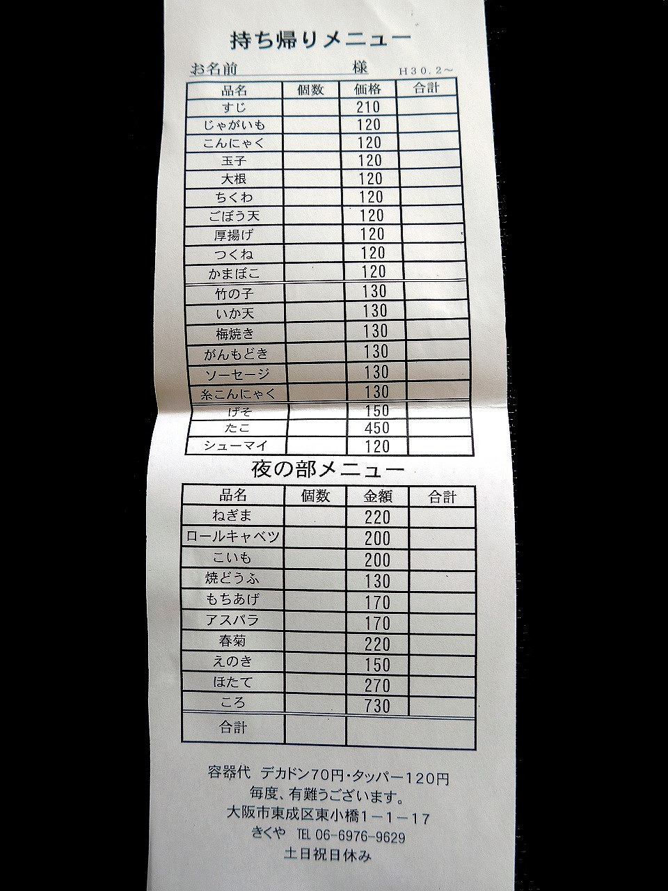 □ 関東煮 きくや 大阪・玉造ぐるめと旅 ニッポンもセカイも。