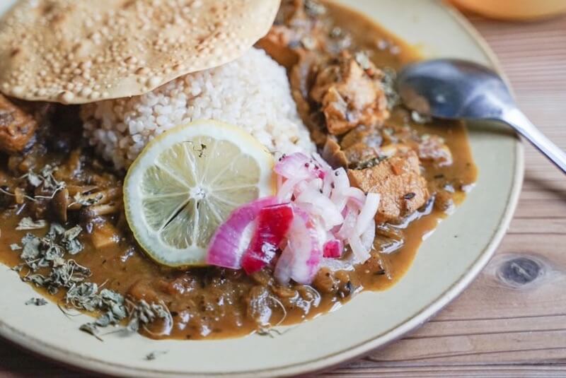 車麩のビンダルー、赤タマネギのアチャールELLE gourmetエル・グルメ。