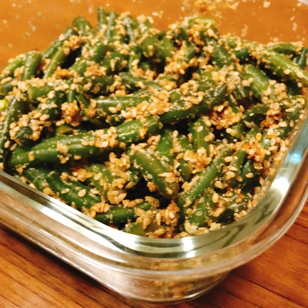 過去レシピ 冷凍いんげんを使って我が家定番のごま和え♡いんげんのごま和えアラフィフ主婦の節約生活とお料理、作り置き、お弁当作りBLOG。
