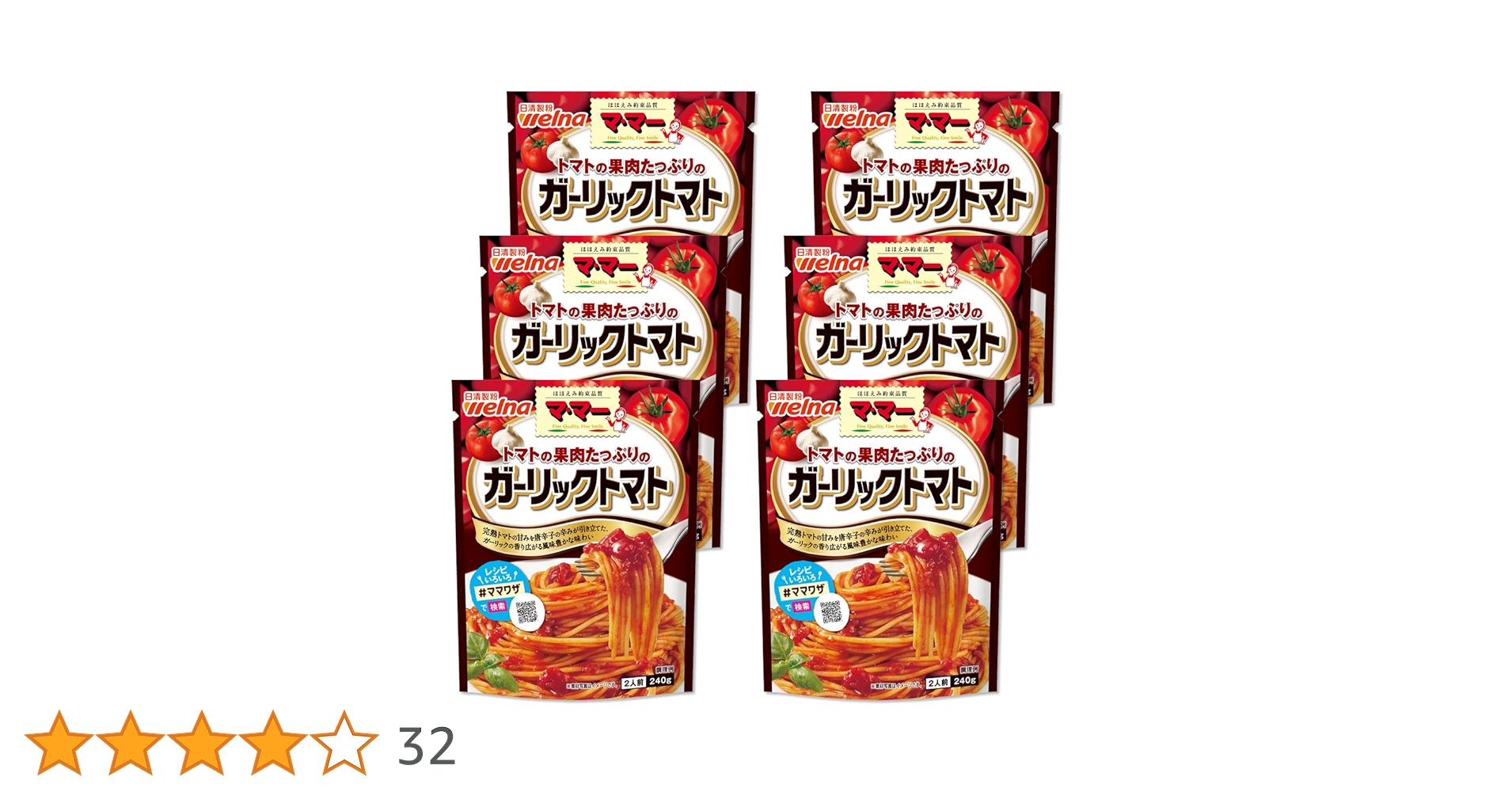 ママー 果肉たっぷりガーリックトマト 240g 日清製粉ウェルナ の口コミ・レビュー・評判、評価点数ものログ。