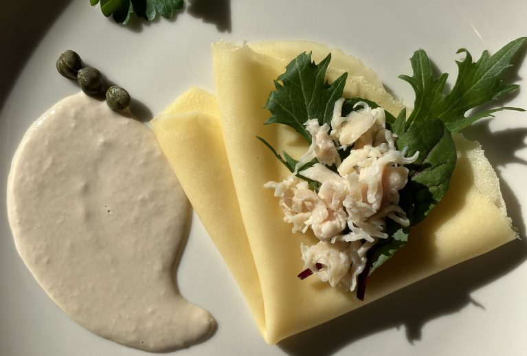 今井寿シェフ監修レシピ 米粉のクレープ サラダチキンを添えたトンナートソース - 株式会社 波里Namisato米粉・もち粉・上新粉・胡麻・きな粉の製造販売FOOD ACTION NIPPON 推進パートナ。