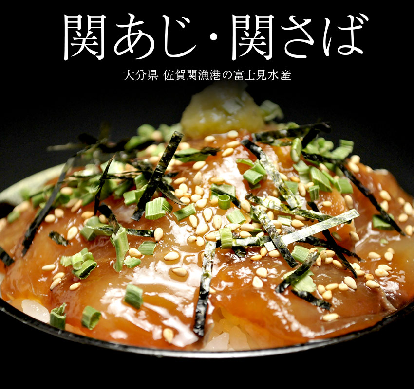 活締めした新鮮な関あじ関さばタレ漬け2食分 脂がのった関アジ関サバりゅうきゅう各1袋入 佐賀関漁港から直送 富士見水産 送料込おんせん県おおいた online shop。