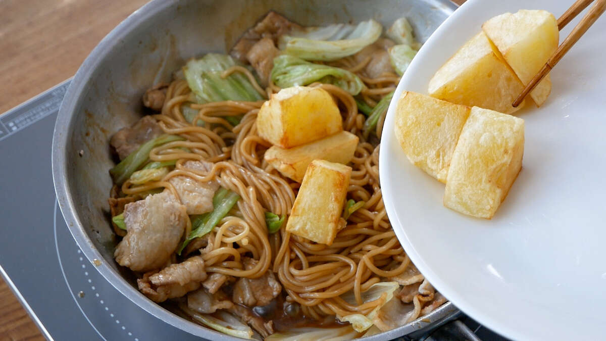 群馬ケンミン熱愛 ご当地グルメ「桐生ポテト焼きそば」に挑戦♪麺の極上食感はフライパン2つ使いが秘訣『あたらしい日日』こんな時代のニューノーマルな暮らし方。食と農、生活情報をお届けします。