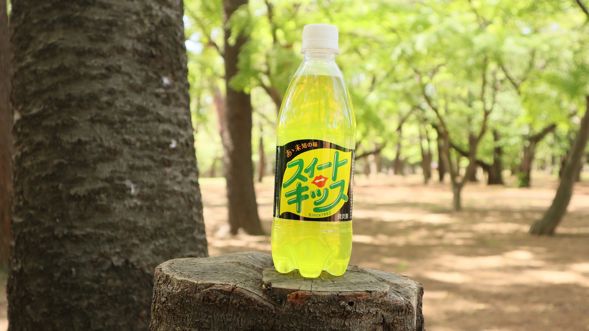 1982年発売「あゝ未知の味」のキャッチコピーでおなじみのスィートキッス✨ 80年代の雰囲気を活かしたレトロなデザインが特徴です!ガラス瓶で300㎖にて発売を開始した 「スィートキッス」は今年で発売から42年⚡ 発売当時、柑橘系炭酸飲料が少なく、 斬新で美味しかった。